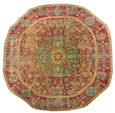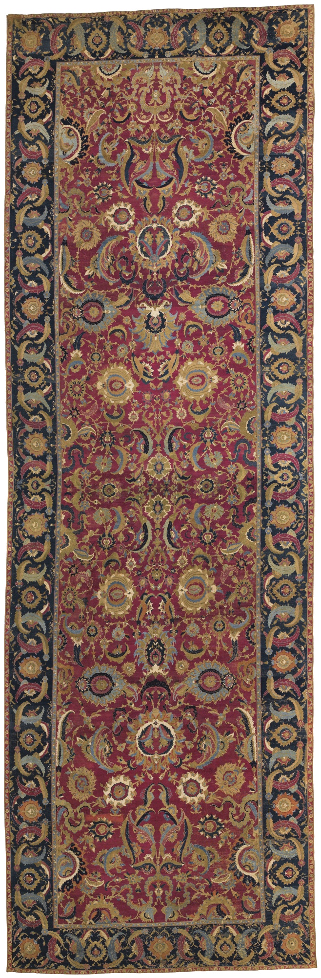 The Clark Sickle Leaf Vase Carpet (6'9" x 8'5") that has entranced collectors and scholars for decades was one of 25 classical 16th and 17th century pieces from the collection of the "Copper King" in New York at Sotheby's (listing) . The auction estimate for the rug of $5,000,000 to $7,000,000 was well below the prior record but passed well into uncharted territory for an Oriental rug to finish at more than three times the previous benchmark.